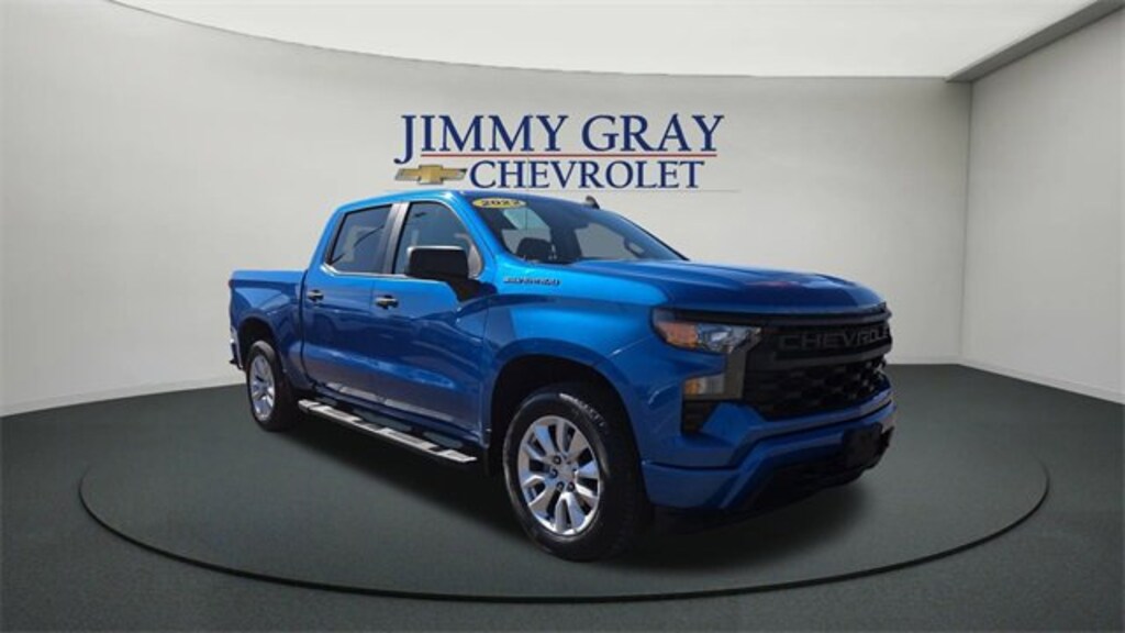 2022 Chevrolet Silverado 1500 Custom Glacier Blue Metallic 4D Crew Cab 2.7L Turbo 8-Speed Automatic RWD Certified by CARFAX - One Owner, Remainder of factory warranty still applies, Service records available, Rear View Back-up Camera, Bluetooth Hands-Free Calling, Bought Here, Serviced Here, We have all records, LOCAL TRADE IN - NEVER A RENTAL, Towing package, Bed liner. Odometer is 14364 miles below market average! Recent Arrival!At Jimmy Gray Chevrolet, our goal is to assist you in making an informed buying decision and a confident buying experience. This vehicle has been through an extensive multi point inspection by a Certified Technician. All necessary services have been done for the appropriate mileage interval as deemed necessary. We have also reconditioned this vehicle inside and out to provide you with as near a new car experience as can be expected from a vehicle of this year and mileage. Buy with confidence. Family owned & operated. Large Mid South Used Car Super Store serving Memphis, Bartlett, Collierville, and Germantown TN. We also serve Olive Branch, Hernando, Oxford, Byhalia, Walls, Como and Horn Lake MS. Olive Branch and Memphis Chevrolet drivers, our dealership is ready to meet the needs of any driver looking for a smart and elegant vehicle. Whether you're shopping for a new or pre-owned vehicle, we're here to help with your search. Our well-stocked inventory includes popular Chevrolet models, including the Silverado, Equinox, Tahoe, Traverse and the popular Chevy Malibu. Wherever you live in the Southaven area, or you're a Memphis or Hernando customer, we have a great inventory of Chevrolet vehicles for you. Call Jimmy Gray today.