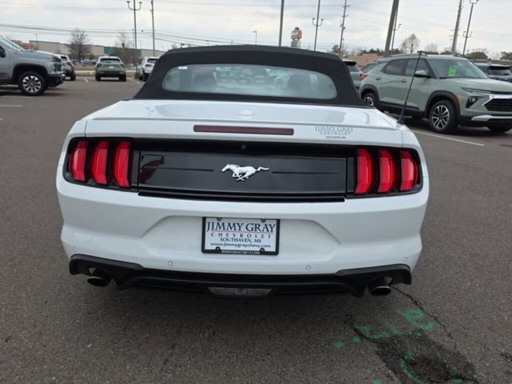 2020 Ford Mustang EcoBoost Premium Oxford White 2D Convertible 2.3L I4 Turbocharged EcoBoost 10-Speed Automatic RWD Odometer is 20318 miles below market average! Recent Arrival! 20/28 City/Highway MPGAt Jimmy Gray Chevrolet, our goal is to assist you in making an informed buying decision and a confident buying experience. This vehicle has been through an extensive multi point inspection by a Certified Technician. All necessary services have been done for the appropriate mileage interval as deemed necessary. We have also reconditioned this vehicle inside and out to provide you with as near a new car experience as can be expected from a vehicle of this year and mileage. Buy with confidence. Family owned & operated. Large Mid South Used Car Super Store serving Memphis, Bartlett, Collierville, and Germantown TN. We also serve Olive Branch, Hernando, Oxford, Byhalia, Walls, Como and Horn Lake MS. Olive Branch and Memphis Chevrolet drivers, our dealership is ready to meet the needs of any driver looking for a smart and elegant vehicle. Whether you're shopping for a new or pre-owned vehicle, we're here to help with your search. Our well-stocked inventory includes popular Chevrolet models, including the Silverado, Equinox, Tahoe, Traverse and the popular Chevy Malibu. Wherever you live in the Southaven area, or you're a Memphis or Hernando customer, we have a great inventory of Chevrolet vehicles for you. Call Jimmy Gray today.